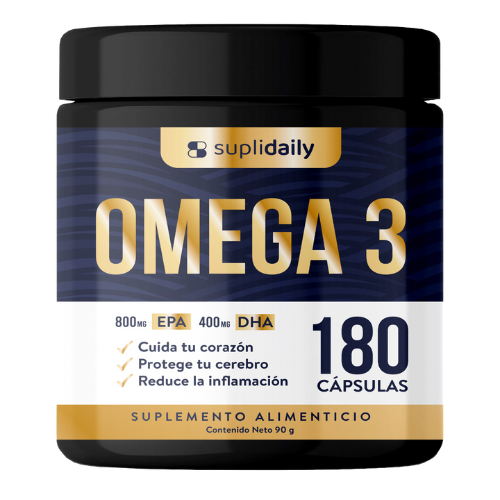 - Nuestro Omega 3 te ofrece un apoyo integral con ácidos grasos esenciales EPA y DHA, fundamentales para la salud de tu corazón, cerebro, visión y articulaciones.