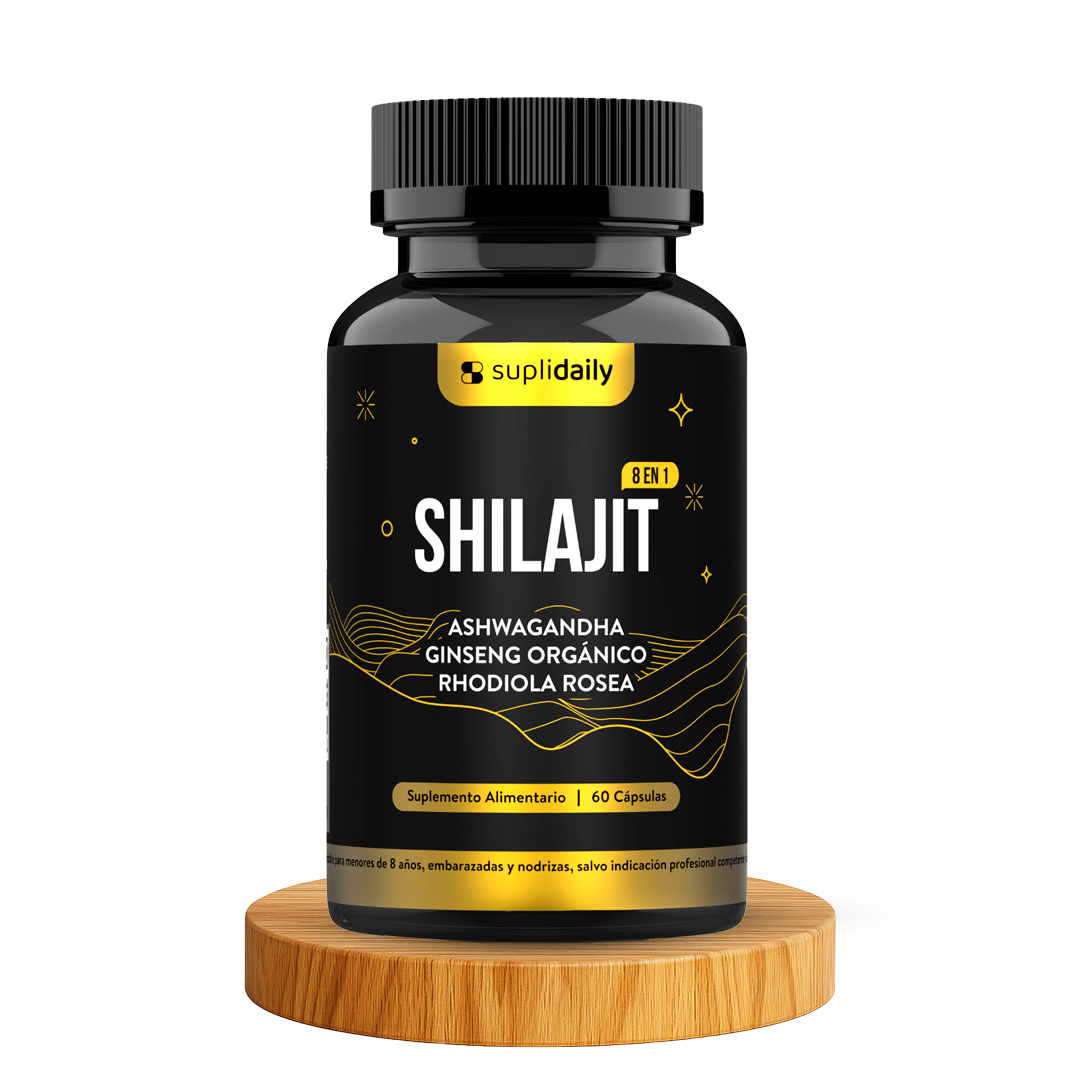 Es un suplemento alimenticio con una fórmula única de origen 100% natural que combina Shilajit con otros siete ingredientes clave: Ashwagandha, Rhodiola Rosea, Ginseng, Hongo Cordyceps, Ginko Biloba, Ortiga y Cúrcuma. Juntos, ofrecen un soporte integral para tu bienestar.